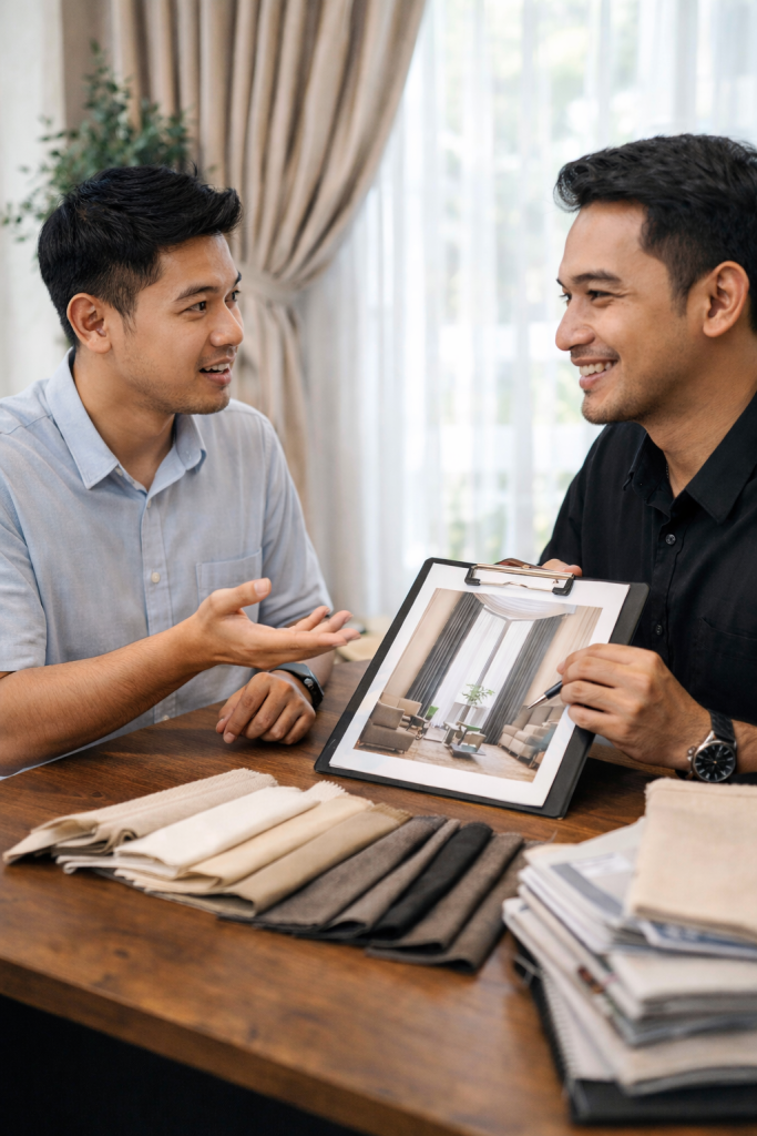 Setiap ruangan memiliki karakter uniknya sendiri. Tim desainer kami akan memahami visi Anda dan memberikan rekomendasi terbaik untuk menciptakan atmosfer yang Anda impikan.